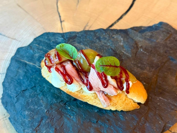 Канапе мусс из кролика с облепиховым конфи на пряничном тосте